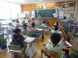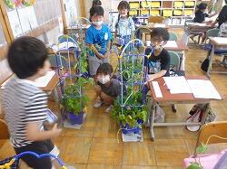 1年生は、アサガオを育てています。