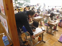 そんな1年生の朝の教室には、登校班の上級生の姿があります。