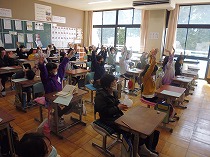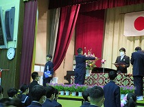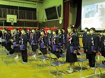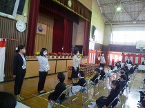 在校生代表の5年生と6年生で行い、来賓としてはPTA会長さんと副会長さんの2名にご臨席いただきました。