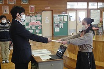 式後は各クラスで、学びのすがたを一人一人に担任から手渡しました。