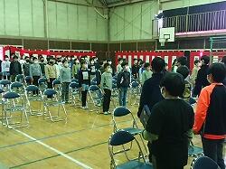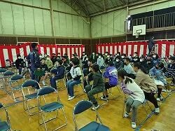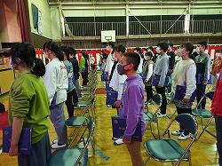 今回は、卒業式の余韻が残る体育館で行い、その様子をTeamsで配信しました。