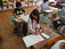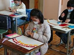 2年生は、色とりどりのシールを丁寧に切りながら作品を作っていきました。