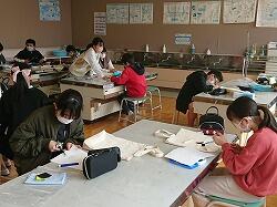 6年生は、家庭科の学習で手提げのバッグを作りました。
