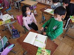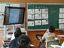 今回は、その内容を自分たちのクラスだけでなく、ALTが用意してくれた吹上小の6年生が同じように学習したことをカードに書いたものを使って学習しました。(ちなみに国府北小6年の学習カードは吹上小での教材になります)