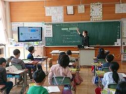 担任が大型黒板で、場面の文や挿絵を表示したりして、主人公の「スーホ」や「白い馬の」様子を読み取りように発問すると、たくさん手が挙がりました。