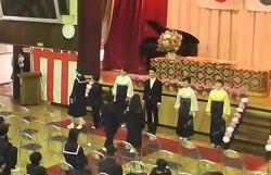着席の際になるべく音を立てずにしっかり前を向いて座る所作など、立派な卒業式にしようとする意欲が見て取れます。