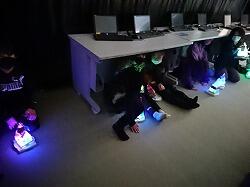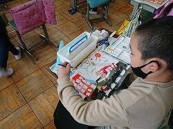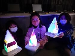出来上がった児童は、光を遮るパソコン室へ移動し、実際にランプを点灯させてみました。