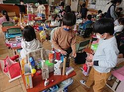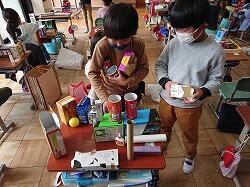 家庭からたくさんの箱を持ってきて材料にしました。