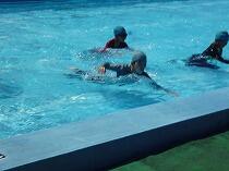服を着たままだといかに泳ぎづらいか、もしプールではなく川や海だった場合どのような危険が考えられるかなどを体験的に学びました。