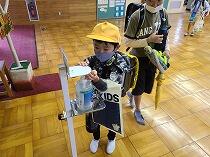 しかし、昇降口での健康チェックでは、荷物の多さや雨天のため傘の片付けもあり、とまどう児童も少なからず見受けられたものの無事に教室に向かうことができました。