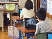 学年ごとに内容や日程は多少変わりますが、家庭でのタブレット学習ができるようにするため、「teams」という会議用ソフトの使い方、「eライブラリ」という個別に進められる学習ソフトの指導をしています。