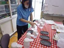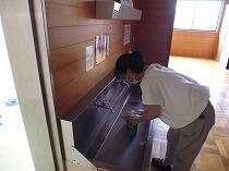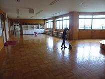 この時期は、教室の1学期の汚れを取り、床にワックスをかける作業を行っています。