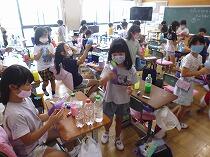 2年生は図工「見つけたよ、わたしの色水」の学習で、ペットボトルの水に絵の具で着色し思い思いの色を楽しんでいました。