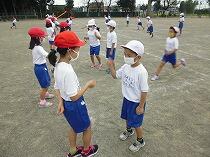 校庭に等間隔のラインを引き、そのラインを利用して、鬼ごっこのようにしながら走力を高めます。