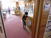 本を借りる前、借りた後の手の消毒やクラスごとに借りる場合も10分以内にはすべての児童が借り終わるようにするなど、いくつかの方策で対応しています。