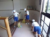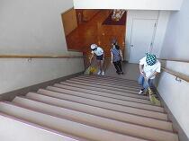 水泳学習の後は、昇降口や階段が砂などで汚れがちですが、すぐに6年生が自主的に掃き掃除をしてくれました。その行動に感激です。