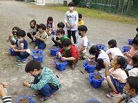 先生の話をよく聞いて一粒一粒大切にまいている姿から、命を大事にする心が伝わってきます。