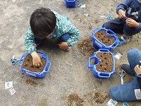 自分の鉢に土や肥料を入れ大切そうに種をまいていました。