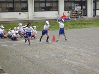 6年生が1年生に「頑張ったね」などと声をかける姿が見られ、心のつながりを深めることにもつながる新体力テストでした。