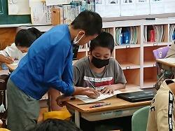 5年生は、タブレットの図を使ったり、ノートに図を描いたり、計算したりとそれぞれの方法で答えを導き出しました。