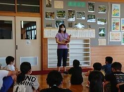 低学年の指導向けのエプロンを使ったり、パペットを使ったりして分かりやすく指導しました。