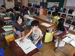 1年生は、文章の中の言葉から周りの様子やあおむしたちの行動を読み取っていきます。