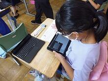 本校では、5,6年が理科においてデジタル教科書を使用しるので、タブレットでデジタル教科書を使いながら、学習を進めていました。