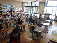 1~5年の各クラス代表のみ体育館で修了証を渡し、その様子をZoomで各教室に流しました。