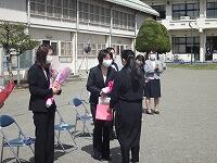 式後は、校庭で上級生との対面式を行い、来週の月曜日からは上級生と登校班で通学できるようお互いに顔合わせをしました。