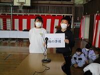 1~5年の各クラス代表のみ体育館で修了証を渡し、その様子をZoomで各教室に流しました。