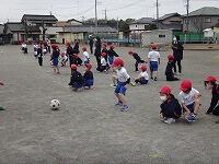 1年生もサッカーボールを使ってドリブルの練習をしています。