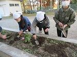 飼育栽培委員会の児童が、球根に傷をつけないよう気を付けながら、丁寧に植えていました。