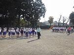 地震後、給食室から火災が発生したという想定のもと、校舎から校庭へ避難しましたが、真剣に素早く落ち着いて行動することができました。
