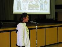 地震発生を想定して行いましたが、放送をよく聞き、「だんご虫」の姿勢で自分の身を守り、決められた避難場所に避難することができました。