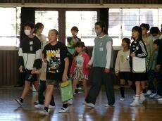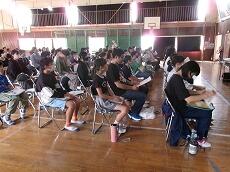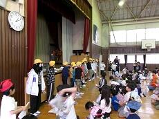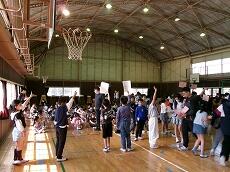 たくさんの児童が体育館に集まりました。