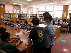 始めに、各クラスで図書室の利用についてのガイダンスを受けてから、利用が始まります。