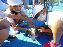 犬、ウサギ、モルモット、ミニブタ、ヤギ、ヒツジがゲージに入っている様子を見るだけでも癒されますが、犬やウサギ、モルモットは実際にふれることができたので、1,2年生は大喜びでした。