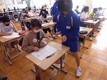 本校出身の6名が、1年生や6年生のミニ先生として授業のアシストをしました。