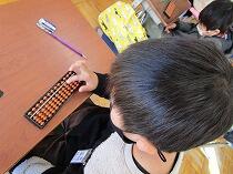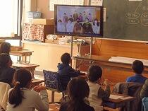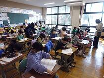 1年生は、黒板の大きな資料や担任が示す大型テレビからの情報を使って、一生懸命課題を解いていました。