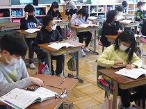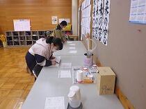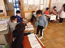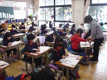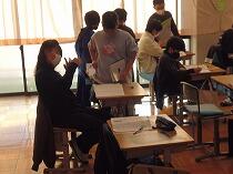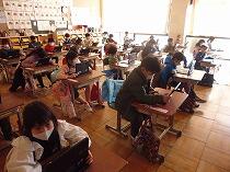 1年生は担任の話をよく聞いてアンケートに答えていました。