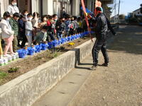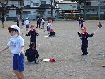 1年生は、持ってきた豆を鬼に向かって投げました。