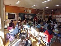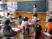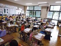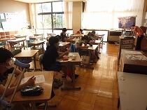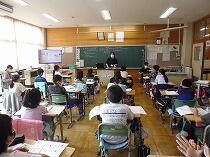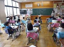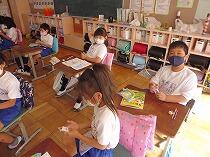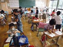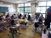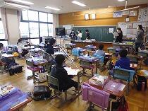 1年生の教室でも朝からしっかり席に着いて先生の話を聞いており、児童の頑張る様子が見られました。