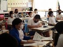 校長から本校のスローガンの話や児童指導主任からの夏休みの過ごし方の話をした後、8/20からお休みになる三井先生からの話を聞きました。