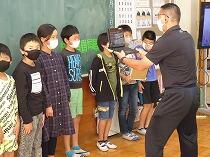 避難後は、スクールサポーターの方から不審者の対応について、パーソナルスペースやブザーチェック、「助けて」と声を上げることなどについて、分かりやすく教えていただきました。
