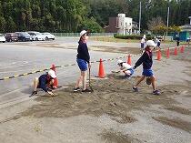 しかし、走路になっている校舎東側の校庭がでこぼこになっていて、走りづらく危険でもあります。
