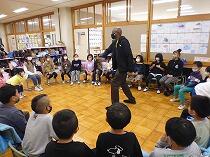 ハロウィンの歌や単語、クイズなど盛りだくさんの内容でしたが、ALTの話をよく聞いて、ノリノリで答えていました。