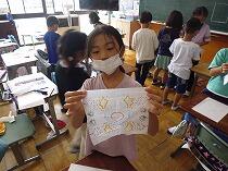 予想以上に模様がきれいなのと色の美しさも加わって、出来上がった作品を楽しそうに見せてくれました。