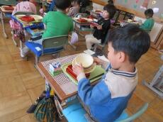 初めてのおいしい給食も当番さんが準備をして食べました。明日も元気に来られるといいですね。