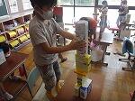 高く積み上げたり、曲面のある箱を工夫して並べたりして、楽しく学習しました。