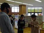 集めた木の実を材料にして、やじろべえやこま、釣り道具などを素材を生かして作りました。